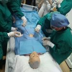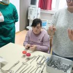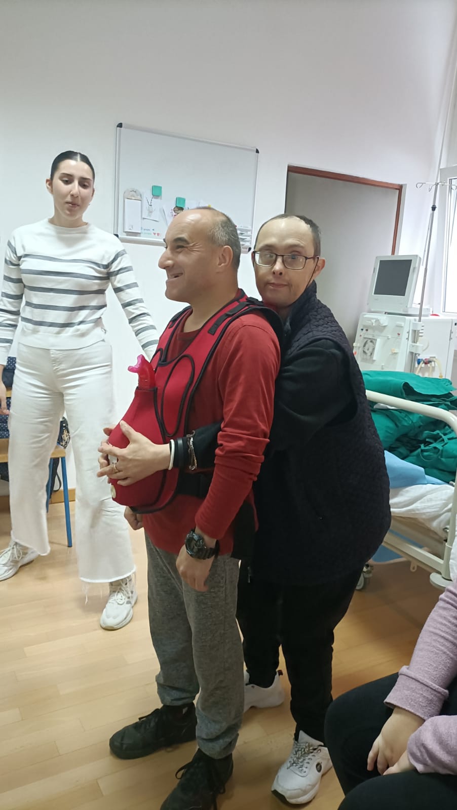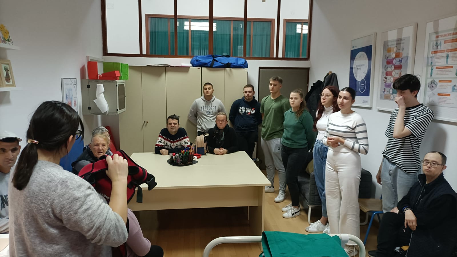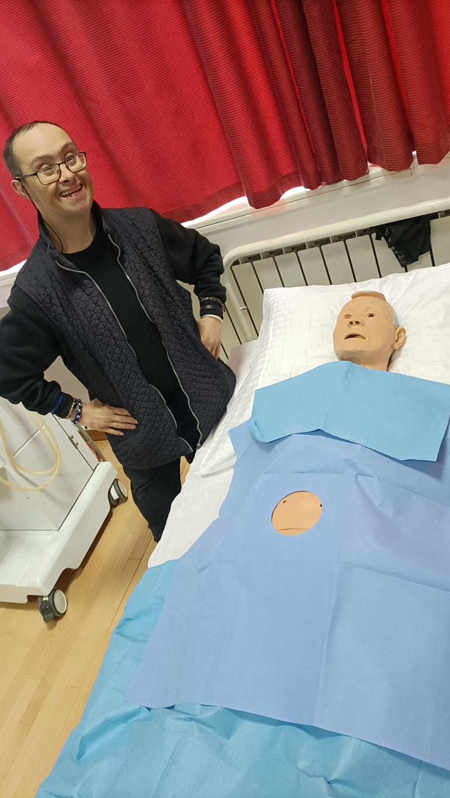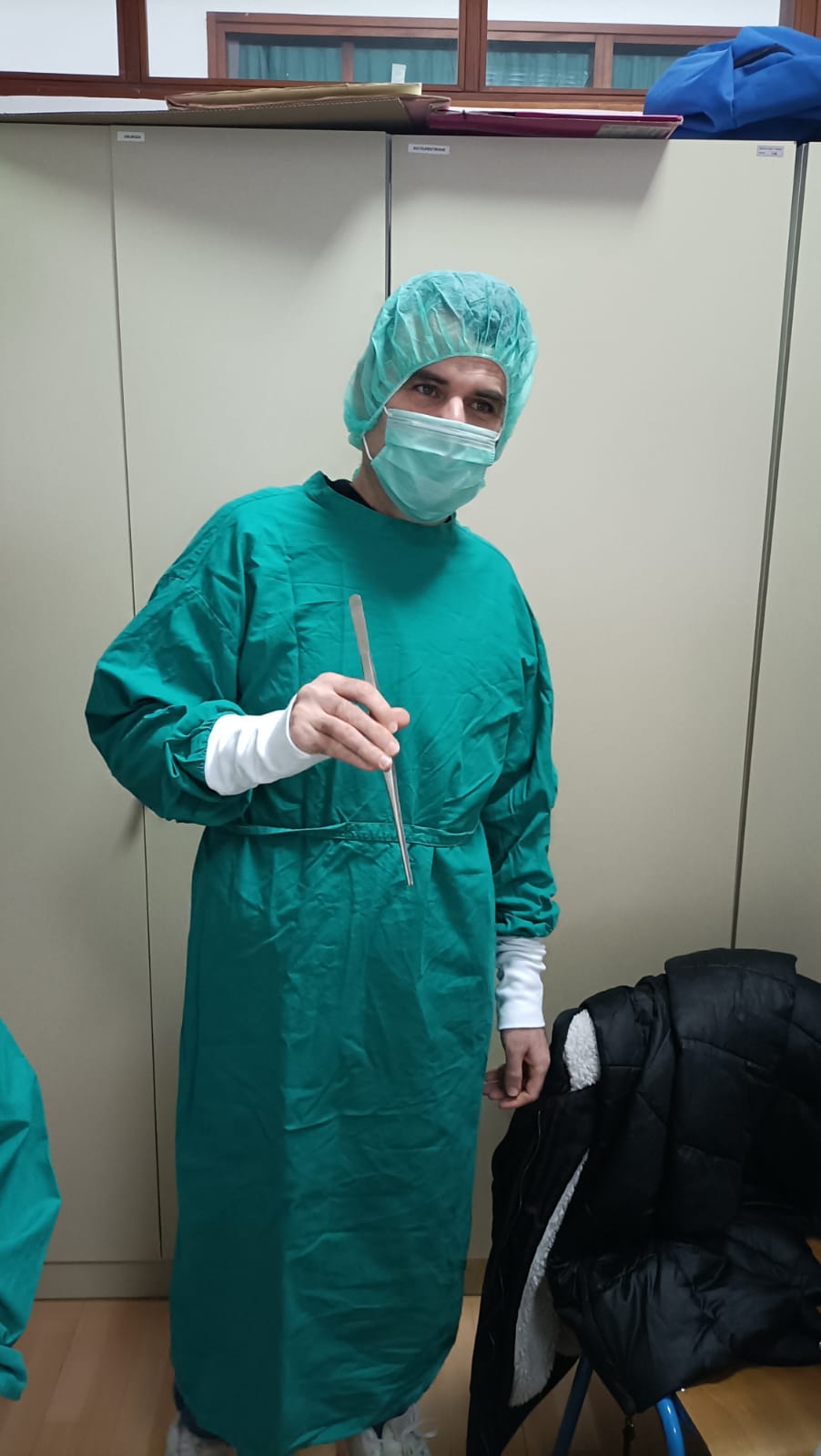 Nakon obilaska škole uputili smo se u kabinet gdje su nam učenici pokazali postupak spašavanja i pružanja prve pomoći kod gušenja. Također smo naučili kako se premotavaju novorođene bebe. A na kraju su nam dali da se obučemo u opremu koju oblače medicinske sestre i kirurzi u operacijskoj sali. U tom trenu i mi smo postali dio ekipe kirurškog tima. Obuki smo, kirurška odijela, kirurške kape, maske i kirurške rukavice i krenuli u spašavanje našeg pacijeta.